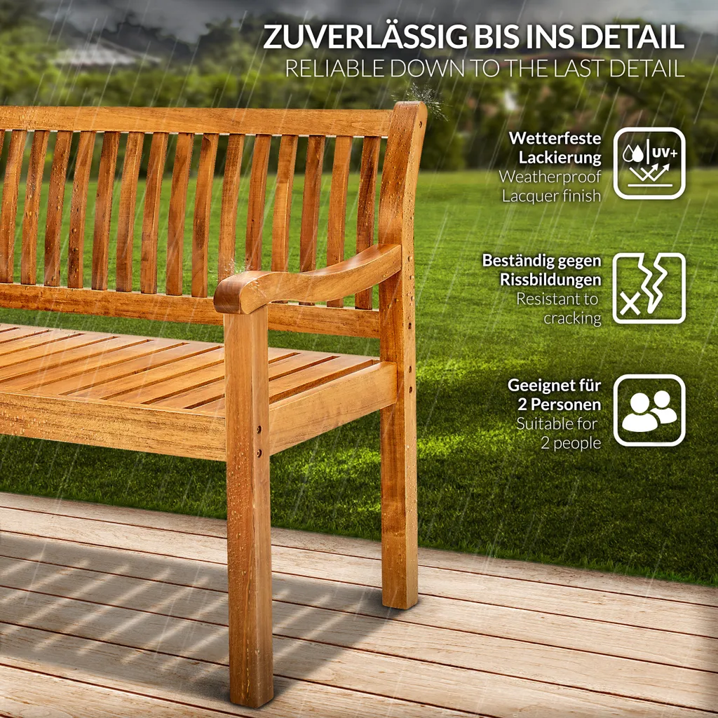 Tillvex® Gartenbank Holz Parkbank Massiv Sitzbank Garten Gartenmöbel 2-Sitzer