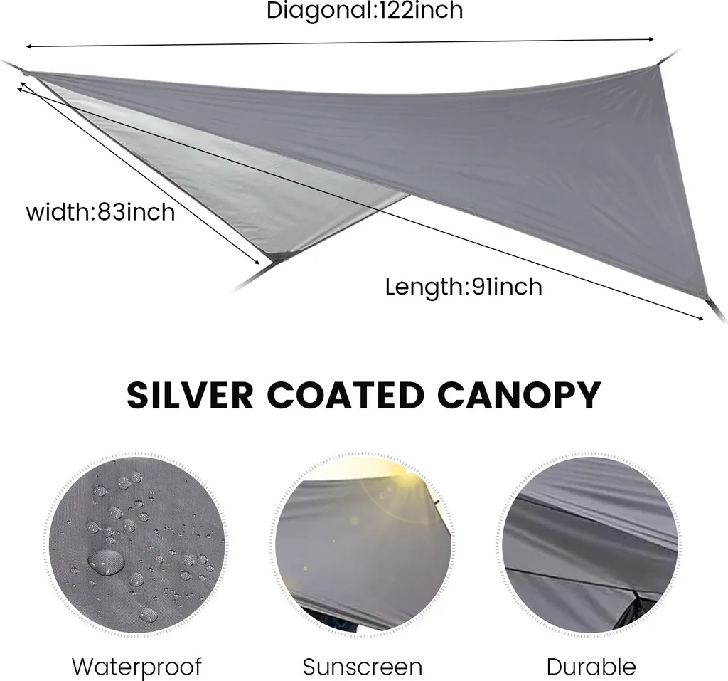 Topchances Camping Hängematte Mit Moskitonetz Und Tarp, Reise Zeltplane Für Outdoor,Wandern,Trekking (Grau+Dunkelgrün)