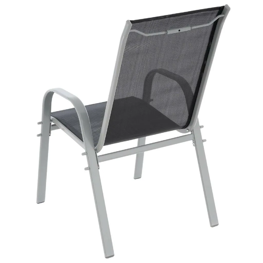 VCM 4er Set Stapelstuhl Rahmen Hellgrau Textilene Schwarz Gartenstuhl Stapelsessel