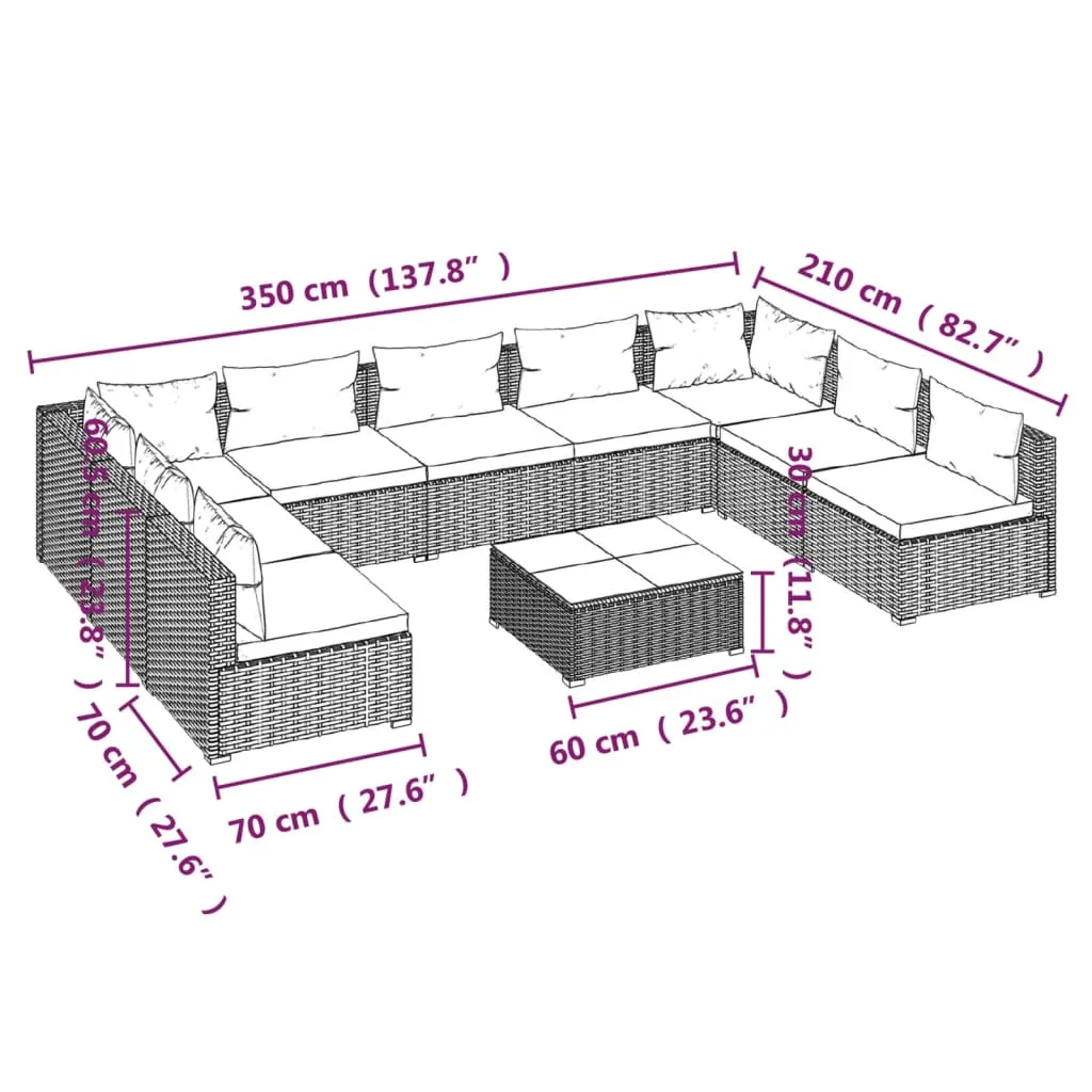 VidaXL 10-tlg. Garten-Lounge-Set Mit Kissen Poly Rattan Braun