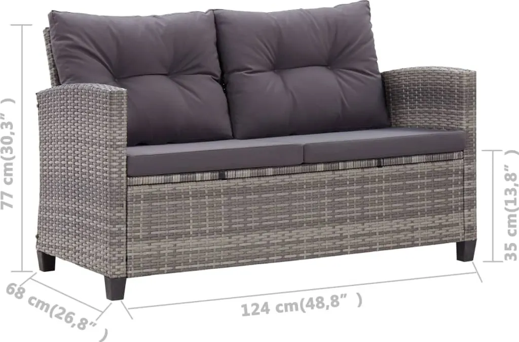 VidaXL 2-Sitzer-Gartensofa Mit Kissen Grau 124 Cm Poly Rattan