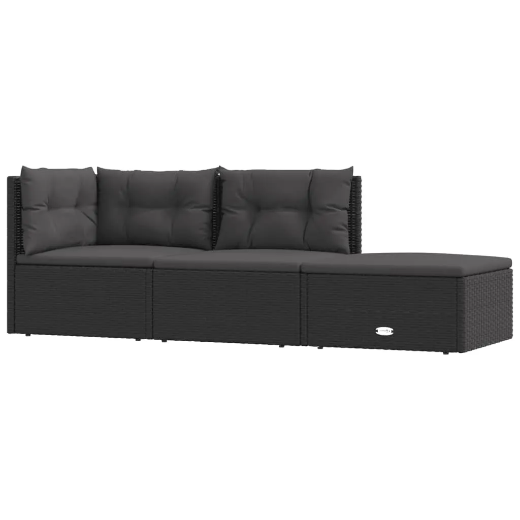 VidaXL 3-tlg. Garten-Lounge-Set Mit Kissen Schwarz Poly Rattan