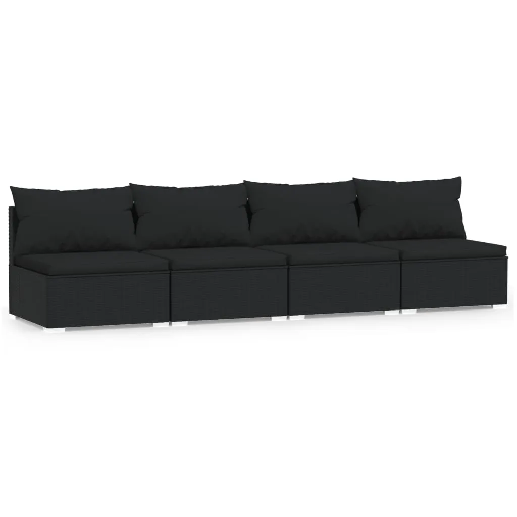 VidaXL 4-Sitzer-Sofa Mit Kissen Schwarz Poly Rattan