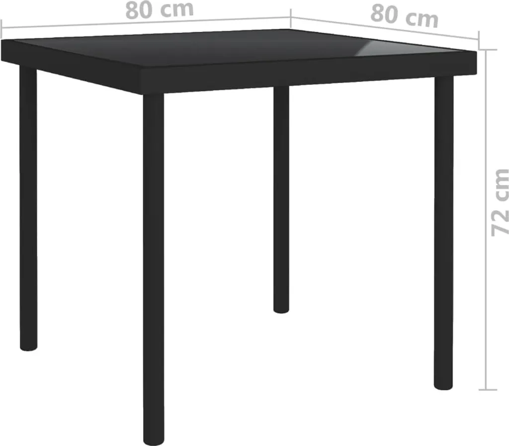 VidaXL Garten-Esstisch Schwarz 80x80x72 Cm Glas Und Stahl