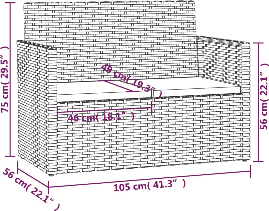 | Zusätzliche Varianten | vidaXL Gartenbank mit Kissen Schwarz 105 cm Poly Rattan, vidaXL Gartenbank mit Kissen Schwarz 105 cm Poly Rattan |