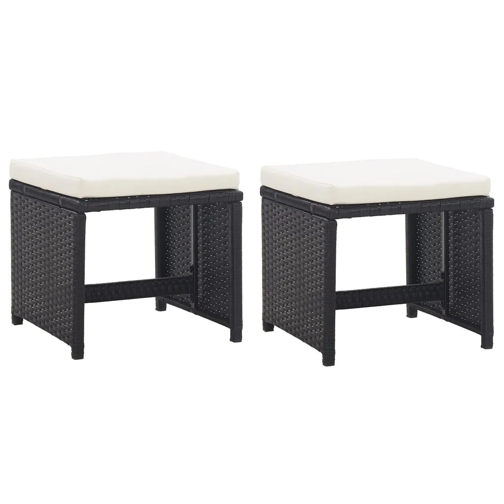 VidaXL Gartenhocker 2 Stk. Mit Sitzkissen Poly Rattan Schwarz