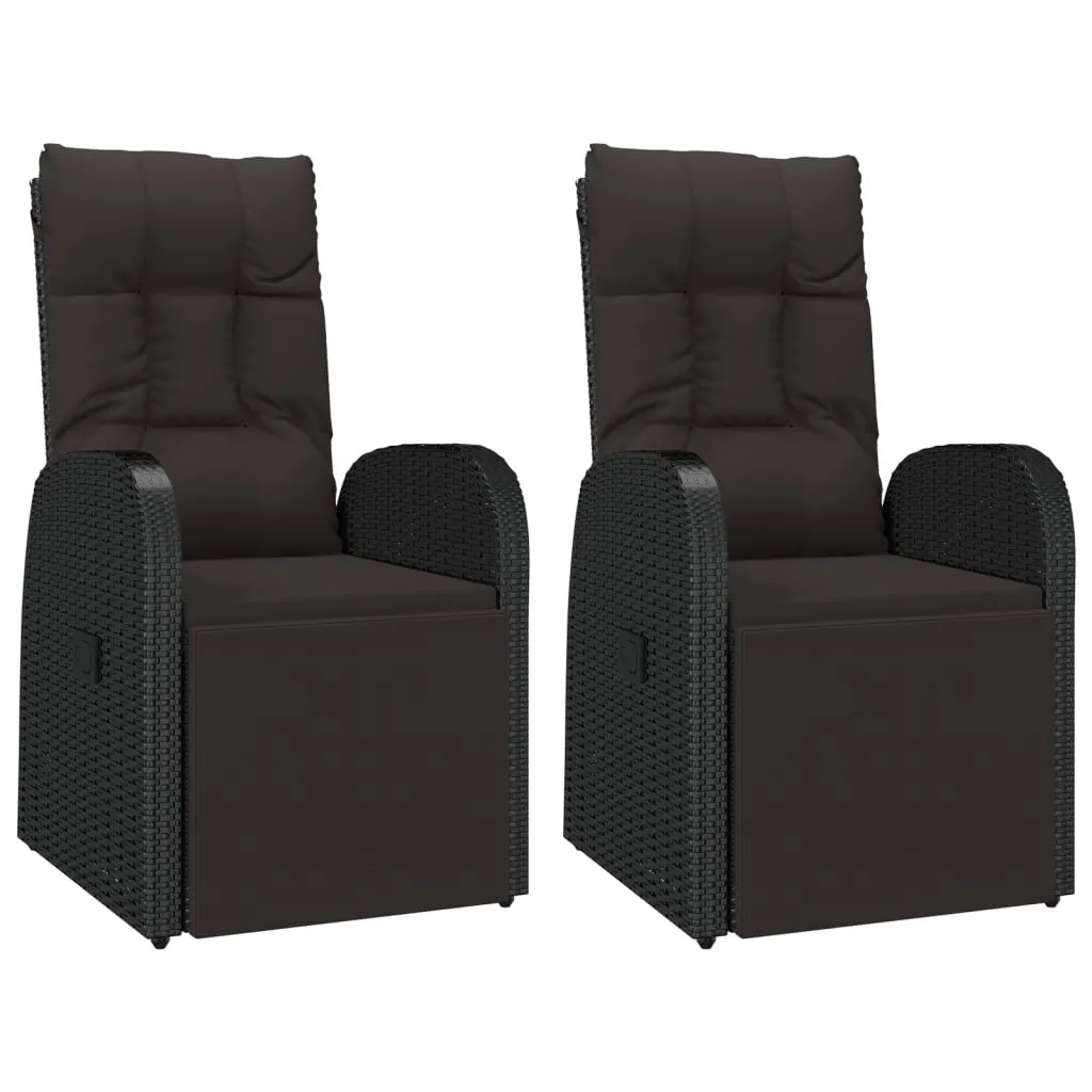 VidaXL Gartensessel Mit Kissen 2 Stk. Verstellbar Schwarz Poly Rattan
