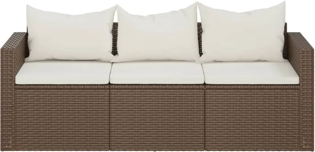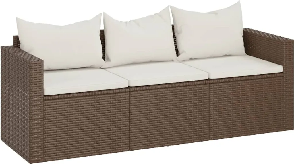 VidaXL Gartensofa 3-Sitzer Mit Kissen Braun Poly Rattan