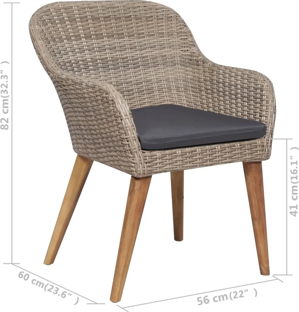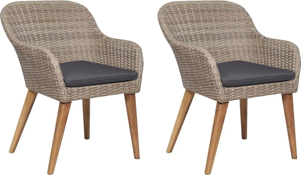 VidaXL Gartenstühle Mit Polstern 2 Stk. Poly Rattan Braun