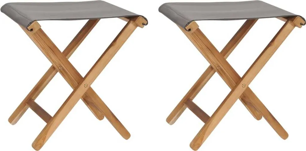 VidaXL Klappstühle 2 Stk. Teak Massivholz Und Stoff Dunkelgrau