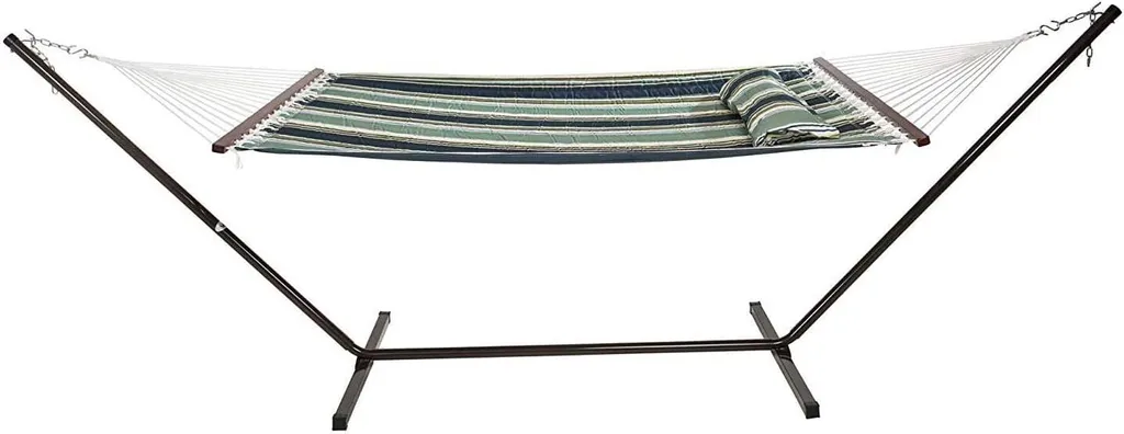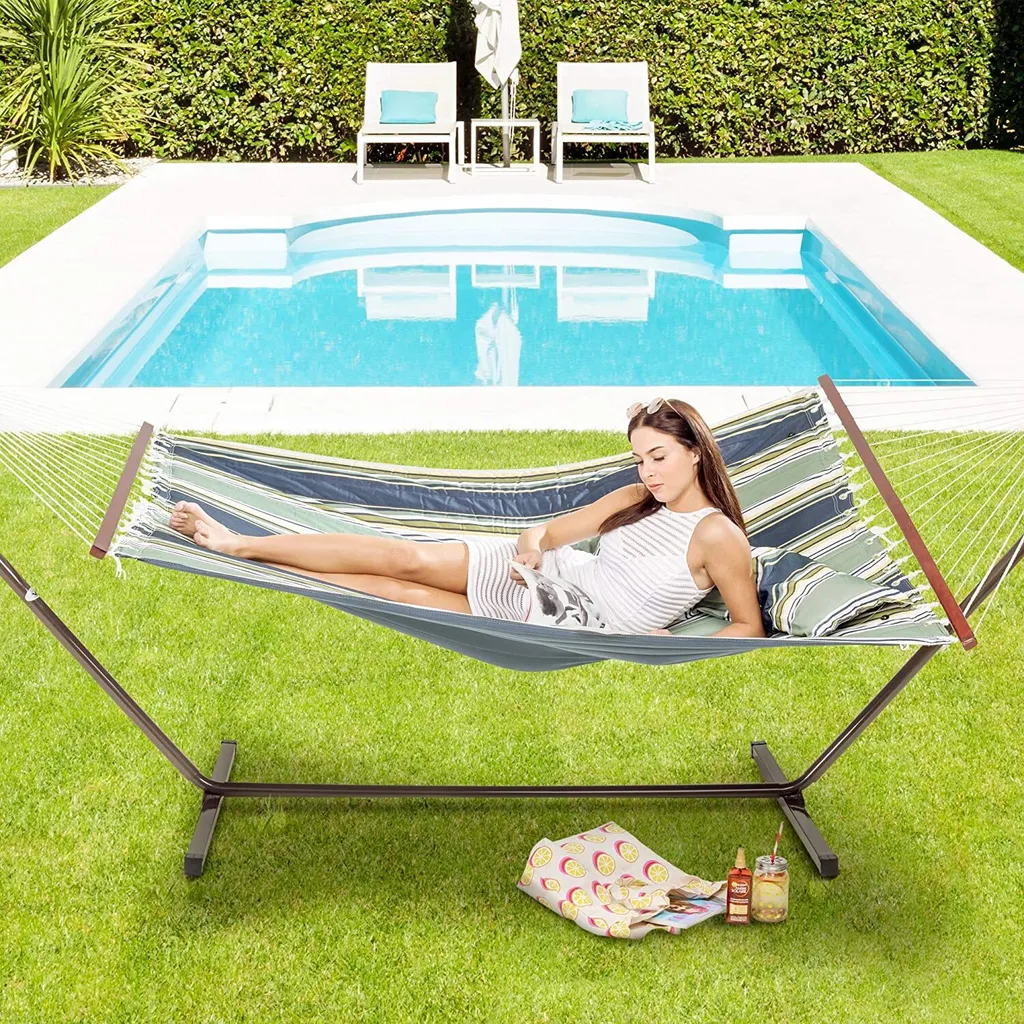 VITA5 Hängematte Outdoor – Hängematte Mit Gestell Für Den Garten, Pool & Balkon – Großzügige Hängematte 2 Personen – Doppelhängematte Mit Ständer – 200kg Belastbarkeit (Dunkergrün/Blau)