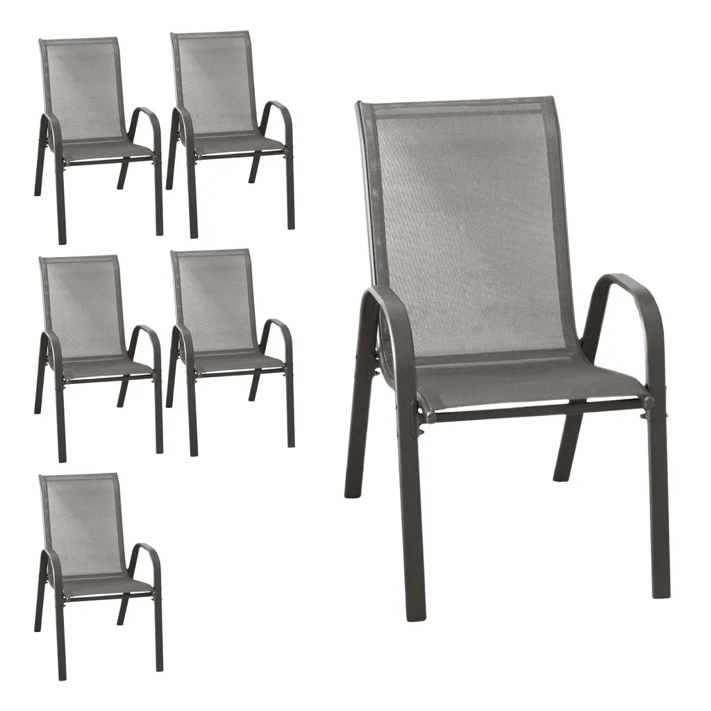 Wohaga 6er Set Stapelstuhl ‚New York‘ Mit Textilenbespannung Anthrazit/Anthrazit