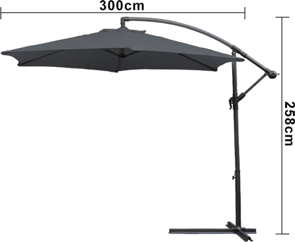 Wolketon 3m-3.5m Sonnenschirm Neigbar Ampelschirm Balkonschirm Marktschirm UV40+ Gartenschirm,Grau,3m