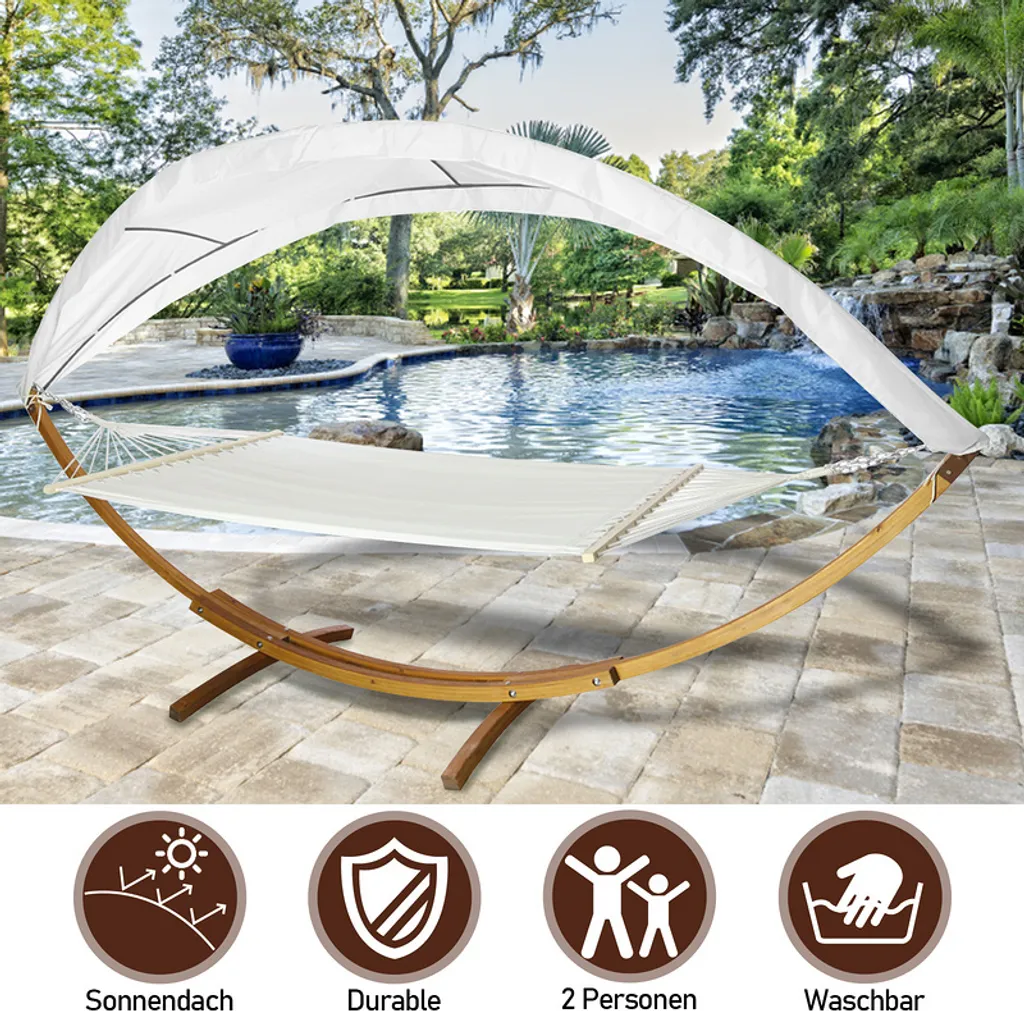 Wolketon Hängematte Hängematten Mit Gestell Und Sonnendach Hammock Aus Wetterfestem Lärchenholz Bis 200kg Stabhängematte Für 2 Personen Outdoor Und Indoor